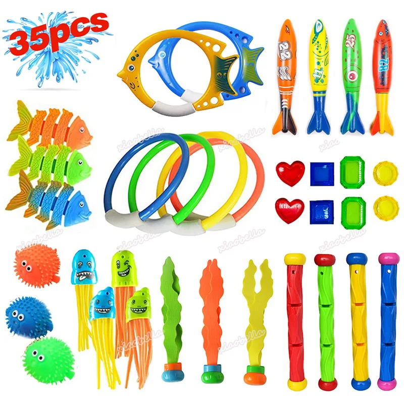 35шт.упак. летние игрушки для дайвинга, Рыба для дайвинга, кольцо, торпеды, подводные водные игры, Тренировочный Набор для бассейна, подарки, игрушки для детей