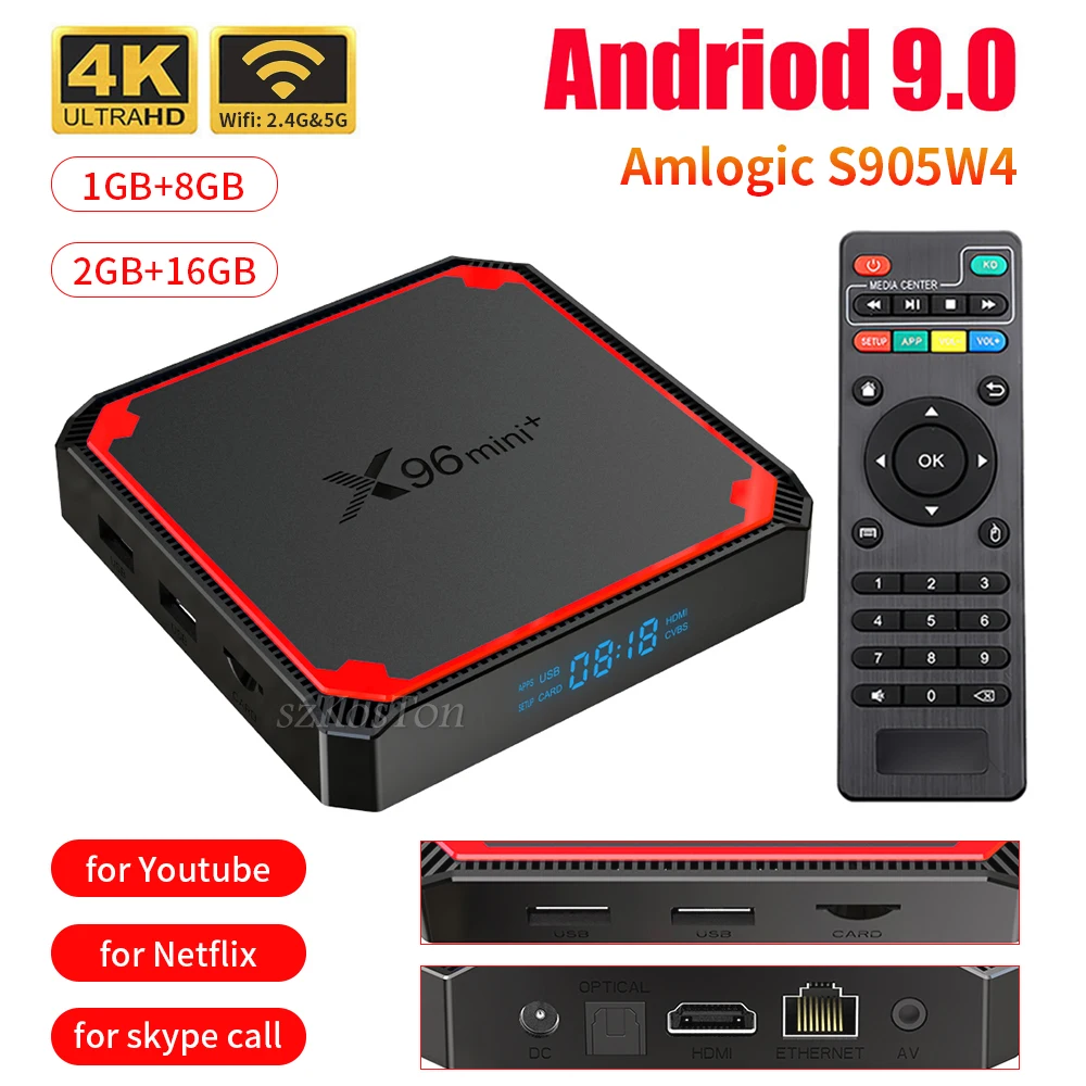 Четырехъядерный процессор Amlogic S905W4 ARM Cortex A53 @ 1,2 ГГц Графический процессор пятиядерный Mali-450MP GPU @ 750MHz, DDR DDR3 1 ГБ или 2 Гб Оригинальная флеш-память eMMC 8 ГБ или 16 Гб (дополнительно: 32 ГБ/64 Гб/128 ГБ) WiFi Amlogic W1: 2,4G & 5G; 802,11 ac HDMI/4K * 2K UHD выход, HDMI 2.0A Зарядное устройство постоянного тока 5 В/2 А ОС Android 9,0 OS, поддержка обновления OTA I/O 1 * HDMI 4K * 2K UHD выход, HDMI 2.0A 2 * USB-порта 1 * AV OUT 480i/576i выход стандартной четкости 1 * оптический цифровой аудиовыход 1 * Ethernet-интерфейс RJ45 1 * Поддержка TF-карты 4 ГБ/8 ГБ/16 ГБ/32 ГБ/64 ГБ