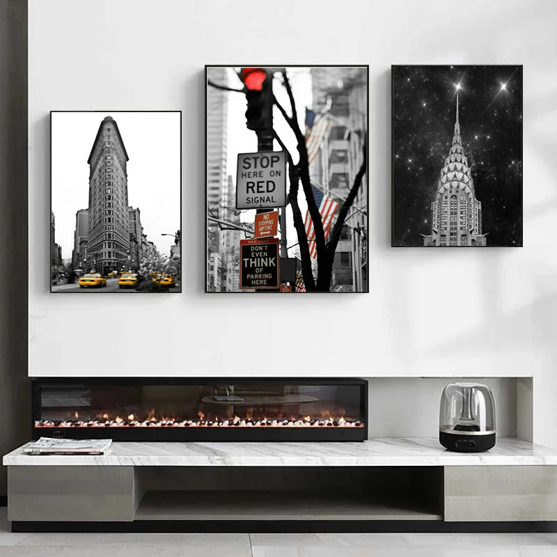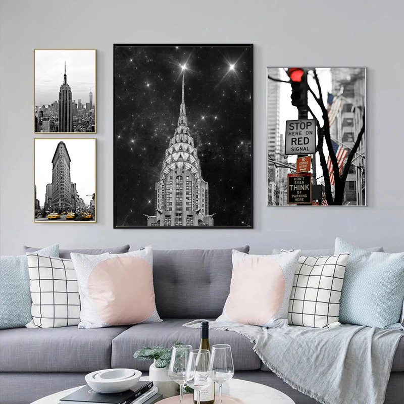 Картины на холсте с изображением здания империи Нью-Йорка, черные и белые скандинавские плакаты и принты, настенные картины для комнаты, домашний декор