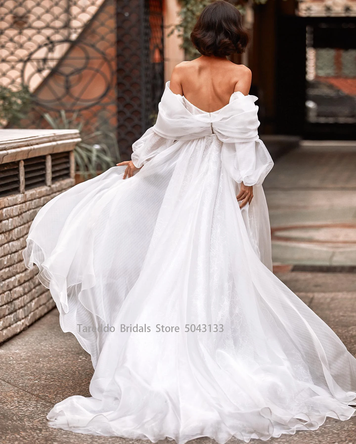 Шикарные Свадебные платья-рубашки из органзы, свадебные платья со съемным длинным рукавом, открытыми плечами, высоким разрезом, в пол, Формальные платья для невесты