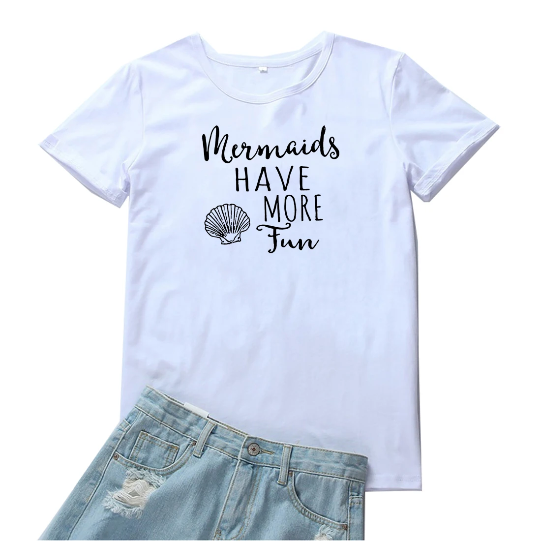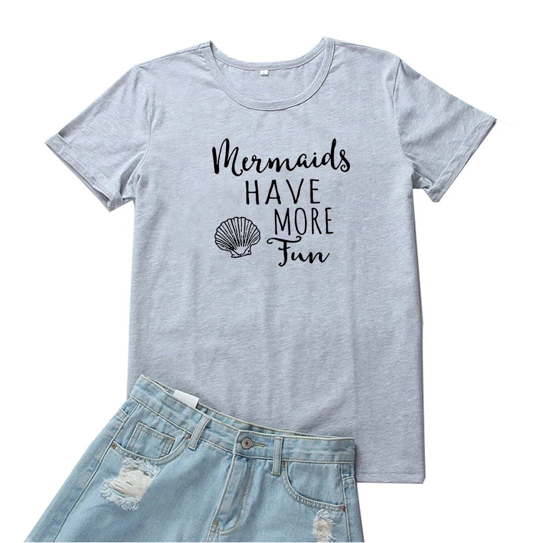 Футболка женская хлопковая с принтом русалок и надписью Have More Fun
