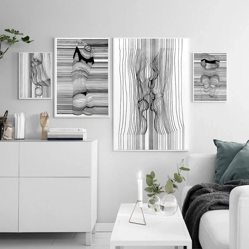 Абстрактная обнаженная женская Картина на холсте черные и белые сов...