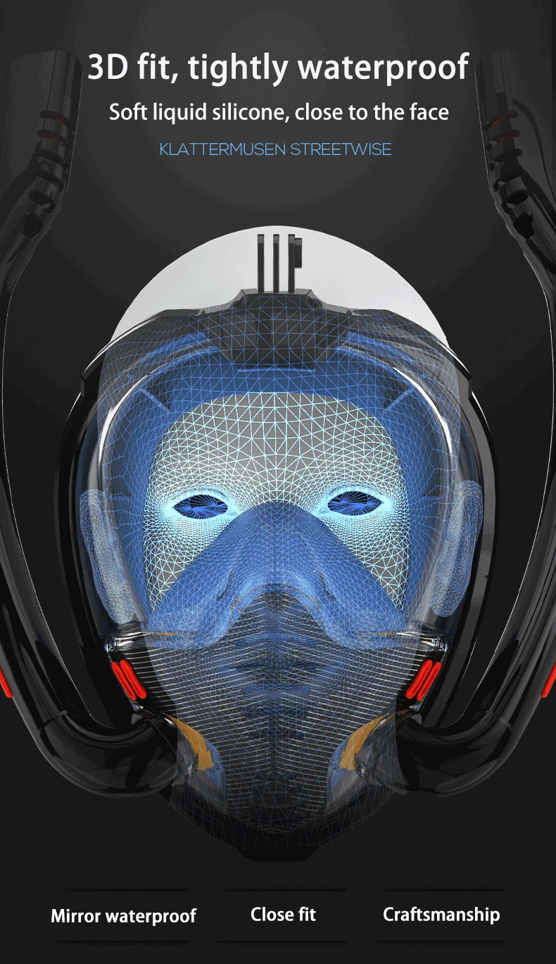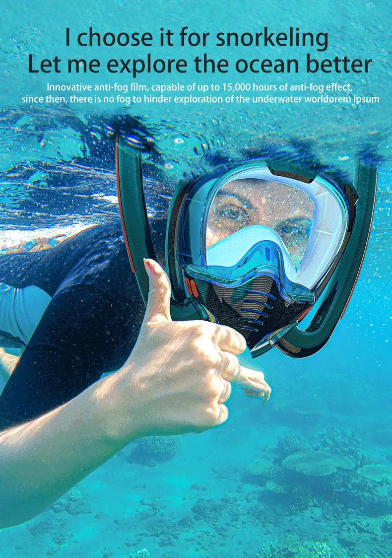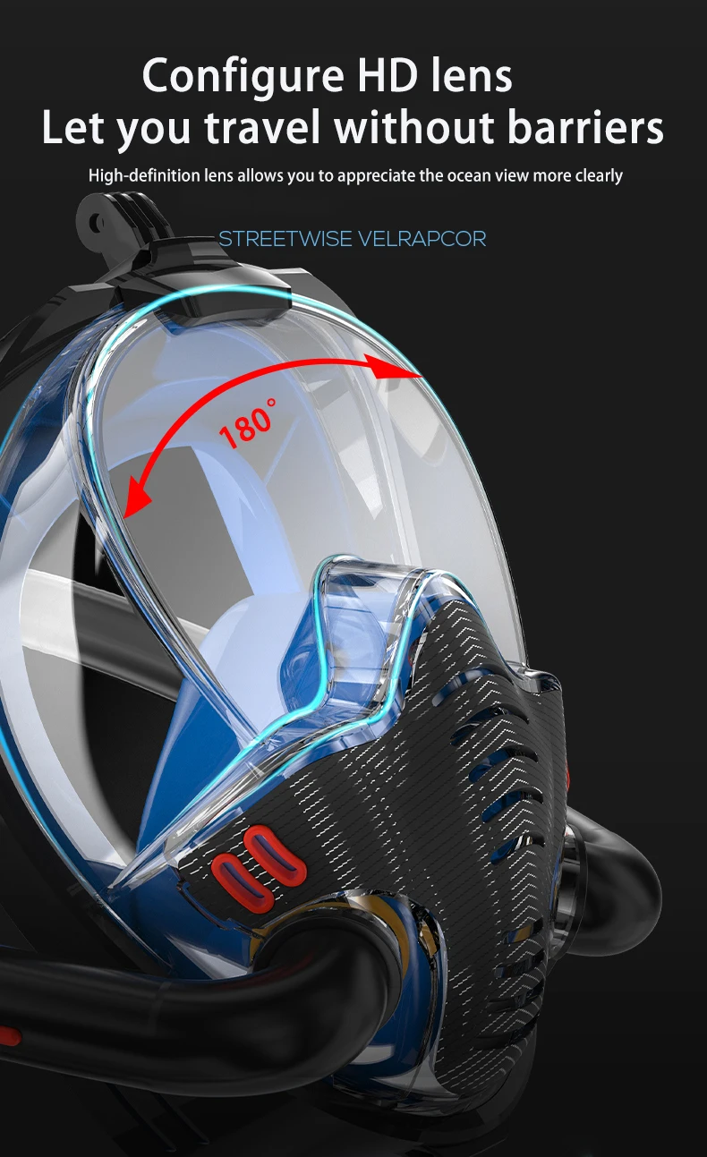 Многофункциональный кронштейн:Можно подключить спортивную камеру.Двойная дыхательная трубка:Воздухозаборник больше, и воздух поступает непосредственно с обеих сторон и не остается в поле зрения.Выхлопные газы разряжаются из выхлопного клапана посередине, чтобы предотвратить образование тумана.Анти-туман высокой четкости:Противотуманное Зеркало высокой четкости 180 °.Водонепроницаемая система:Автоматически блокирует поры при погружении в воду и автоматически открывает поры на поверхности плавающей воды.