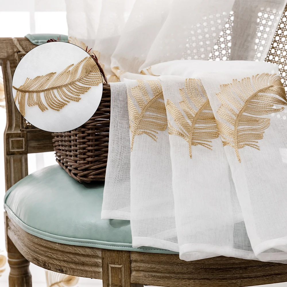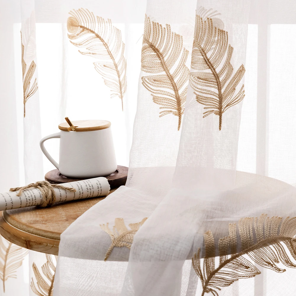 Вышитые тюлевые шторы CDIY с перьями для гостиной, спальни, кухни, современные прозрачные оконные шторы, готовые занавески, панели