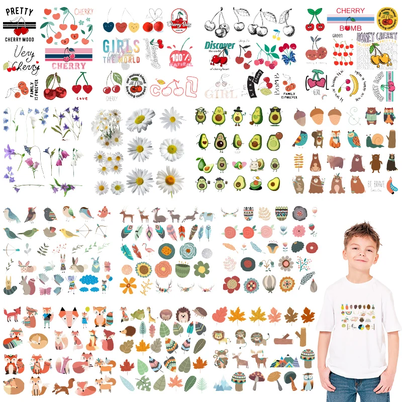 Мультяшные милые узоры в виде животных на переводе для одежды, вини...