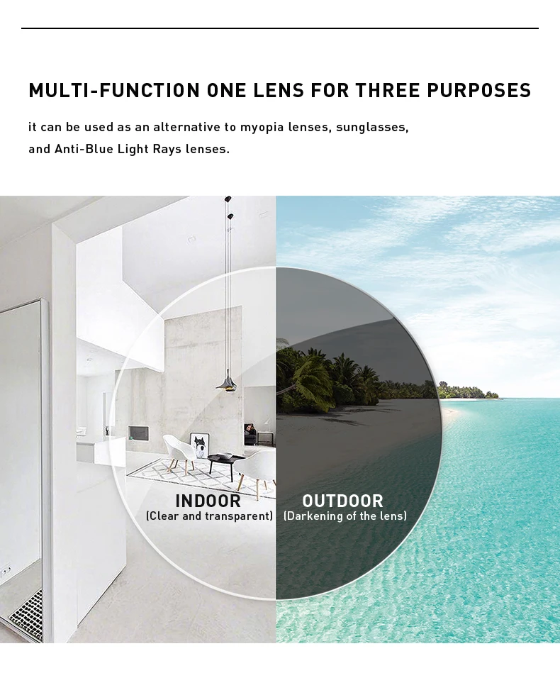 Линзы фотохромные, 1,561,611,671,74, многофокусные, для близорукости