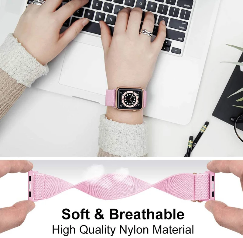 Эластичный нейлоновый ремешок для Apple watch 6 5 4 3 2 SE, регулируемый плетеный спортивный эластичный браслет для iwatch 44 мм 42 мм 40 мм 38 мм