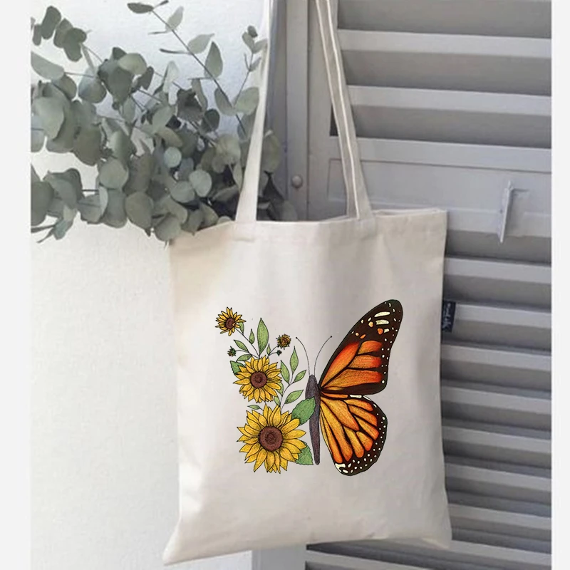 Женские хозяйственные сумки с цветочным принтом бабочки, Женская Холщовая Сумка через плечо, Эко сумка для хранения, многоразовые складные сумки, женская пляжная сумка