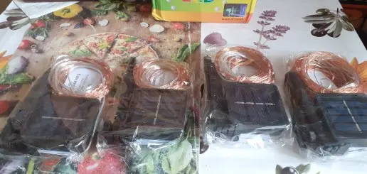 envío rapidísimo en 10 días. Las he probado y funcionan muy bien, se encienden automáticamente y tienen botón de on y off y otro de Mode con 8 diferentes funciones de luz. el cable es fino y no se ve apenas. color cobre de hilo. lo recomiendo