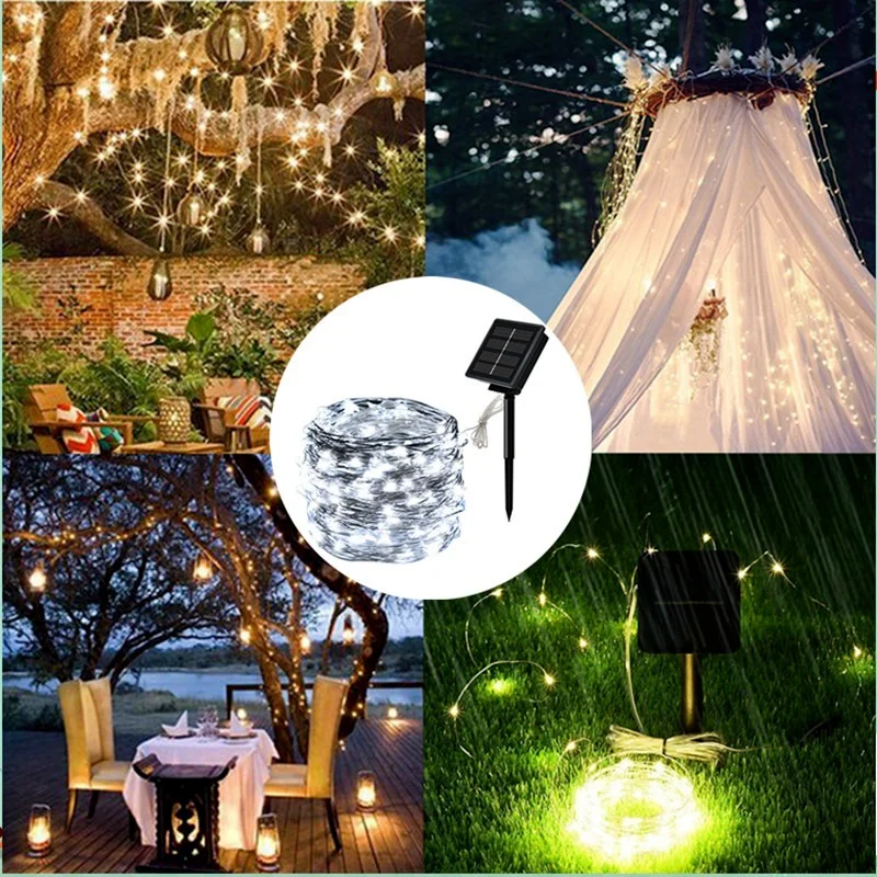 Гирлянда садовая на солнечной батарее, водонепроницаемое садовое украшение для улицы, свадебное украшение, уличное освещение с медной проволокой