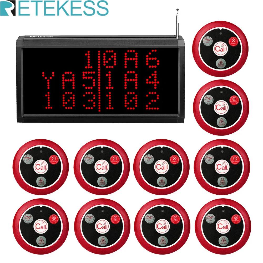 Беспроводная система вызова Retekess, пейджер для ресторана, пульт дистанционного управления, голосовой приемник, хост + 10 кнопок передатчика T117 для кафе-бара
