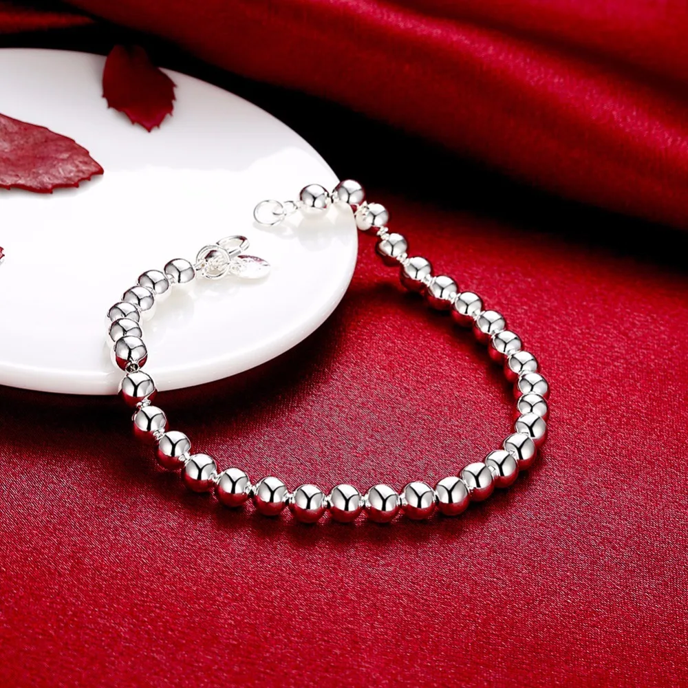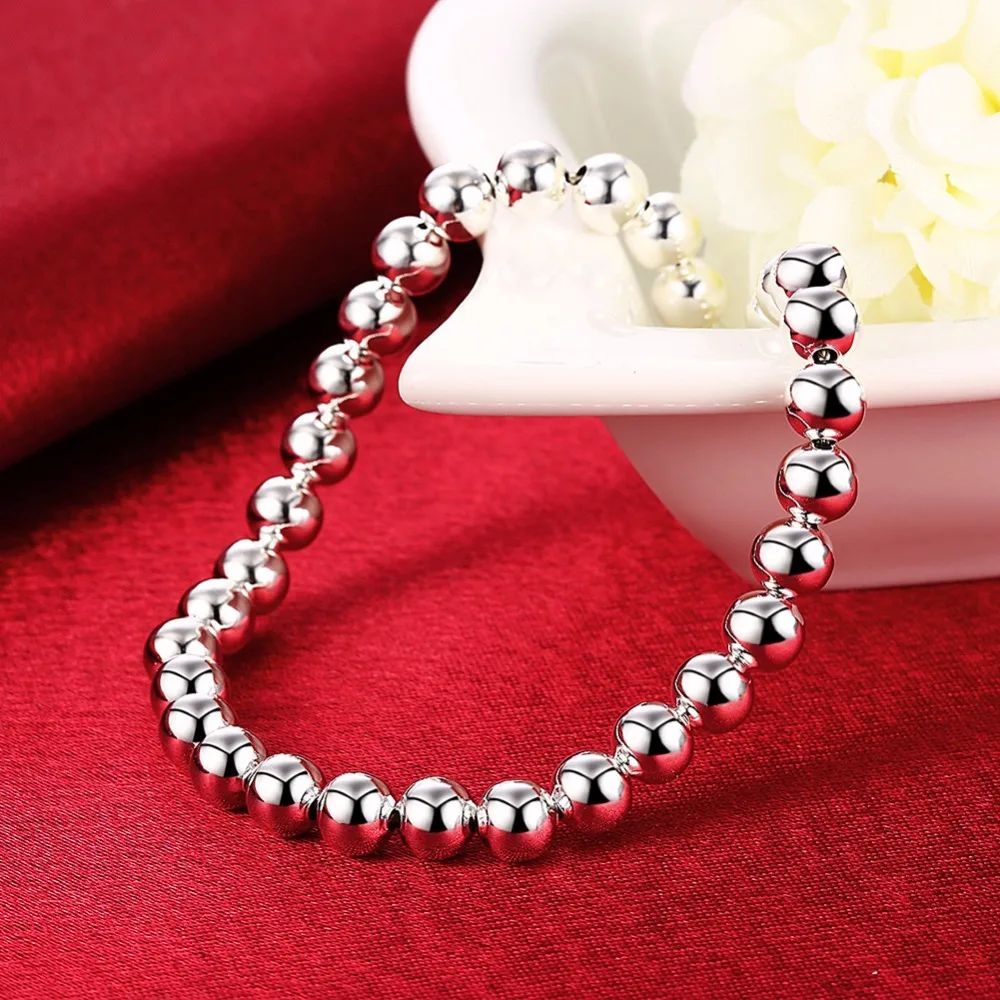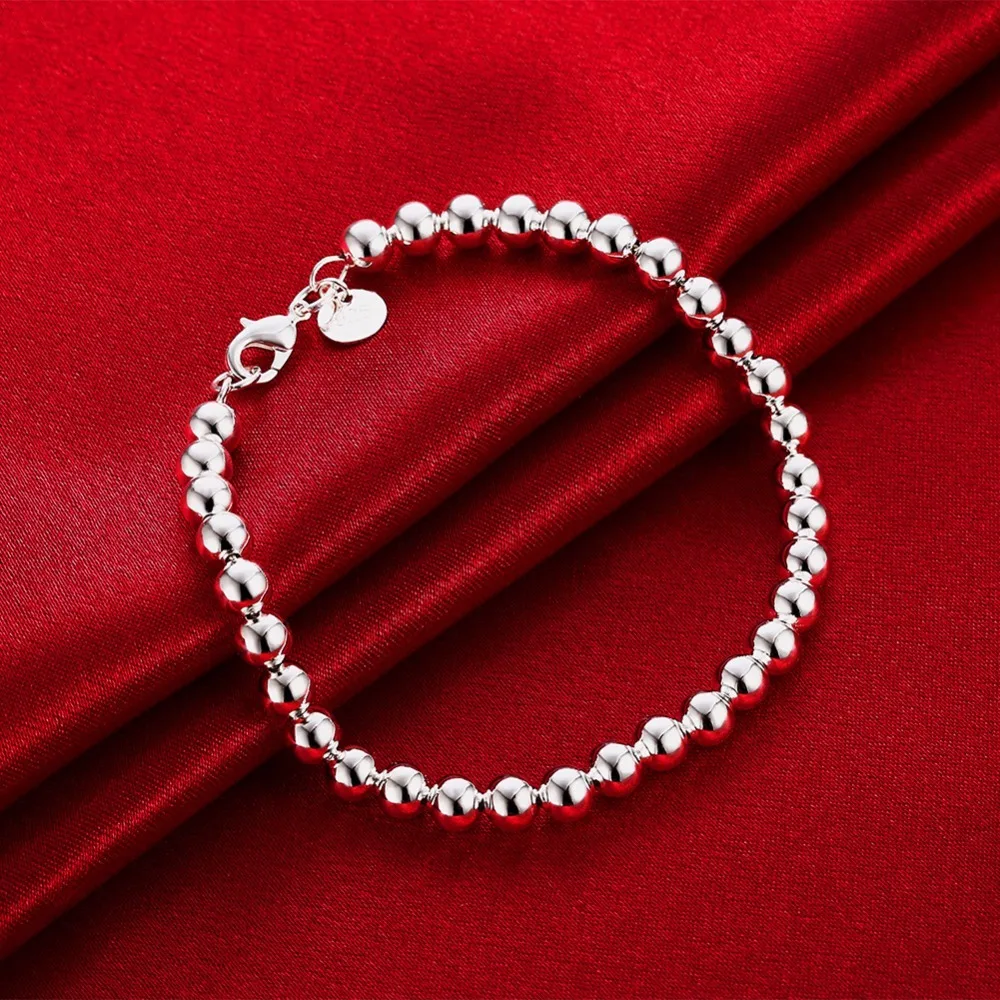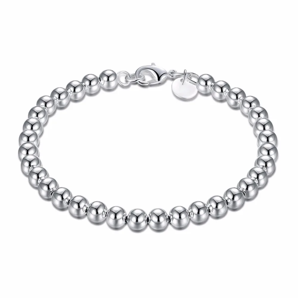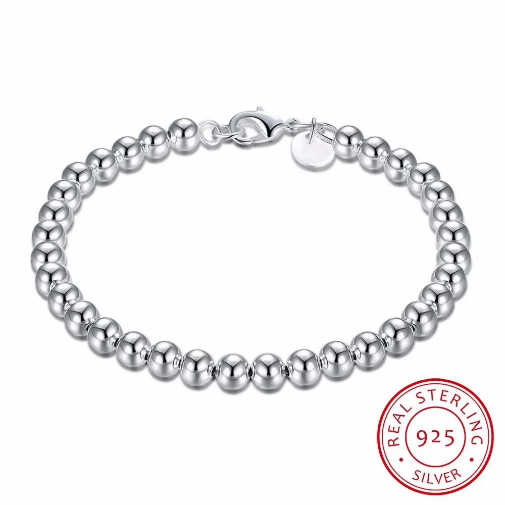Изящные Ювелирные изделия от известного бренда, браслет-наручники из стерлингового серебра 925 пробы для женщин, браслет с бусинами 6 мм, браслет из серебра 925 пробы