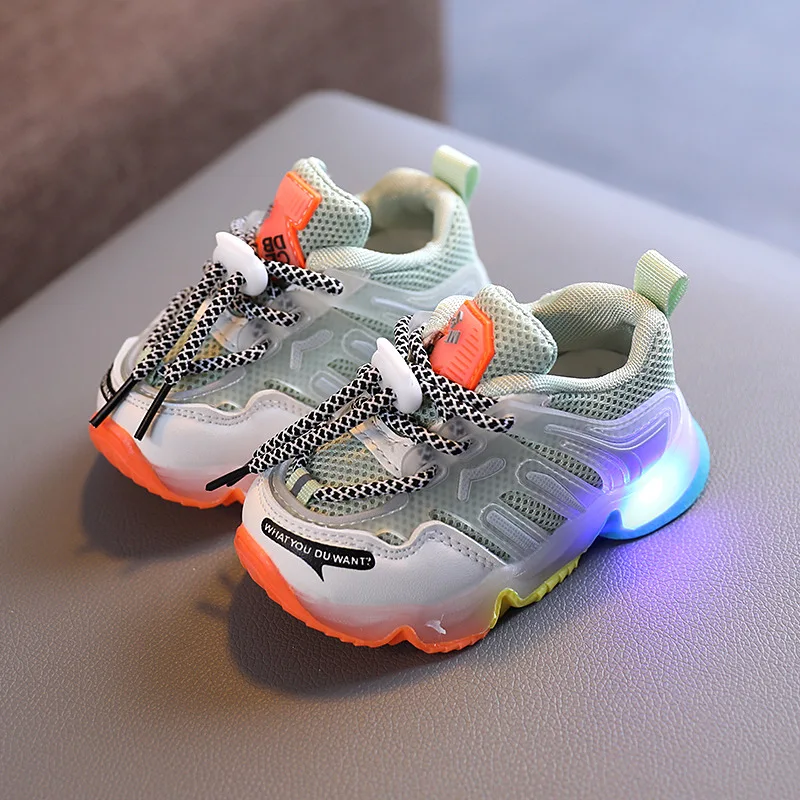 Детские светящиеся кроссовки, дышащая сетчатая обувь с подсветкой, ...
