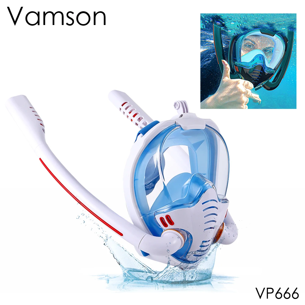 Маска для подводного плавания Vamson с двойной трубкой, незапотевающая, 180 , широкое поле для Gopro Hero 10 9, аксессуары для крепления камеры VP666