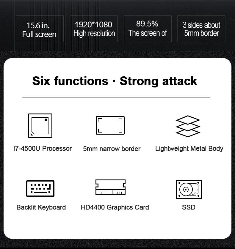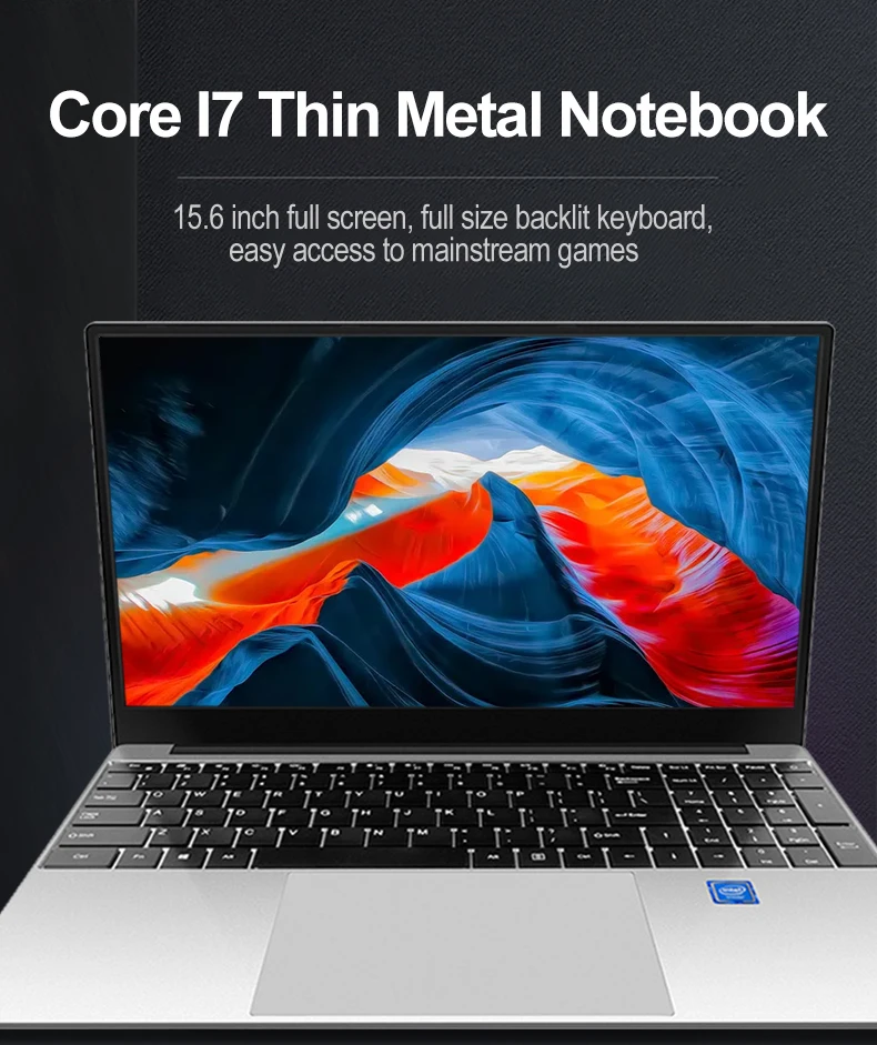 Ноутбук игровой 15,6 ", Intel i7, 16 ГБ ОЗУ ТБ SSD HDD, металлический корпус, 1080P, Windows 10, Двухдиапазонная клавиатура, WiFi