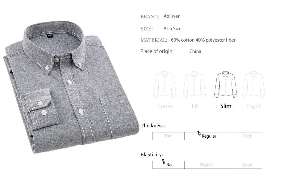 Мужская рубашка из ткани Оксфорд AOLIWEN, однотонная приталенная рубашка с длинным рукавом, деловая одежда, 2019