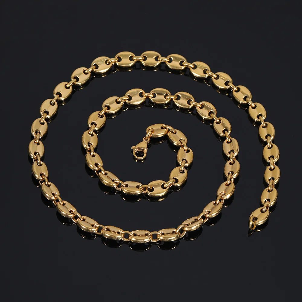 Ожерелье в виде кофейных зерен 8 мм, цепочка из нержавеющей стали для мужчин и женщин, браслеты в стиле хип-хоп, ювелирные изделия золотого цвета