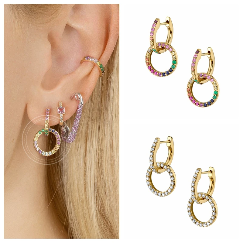 Женские серьги-кольца из стерлингового серебра 925 пробы с пряжкой и кристаллом циркония, серьги-подвески Huggies, изысканные ювелирные изделия, подарки