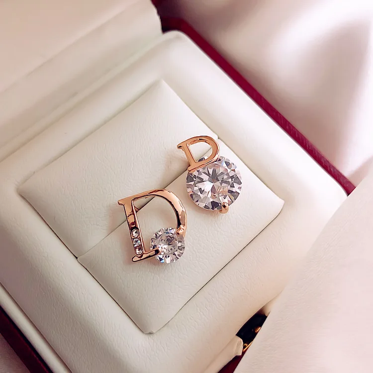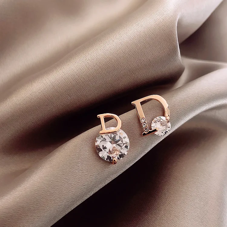 Корейская мода серьги-гвоздики в форме буквы D серьги-гвоздики с кристаллами блестящие асимметричные серьги пикантные вечерние queen Модные женские серьги