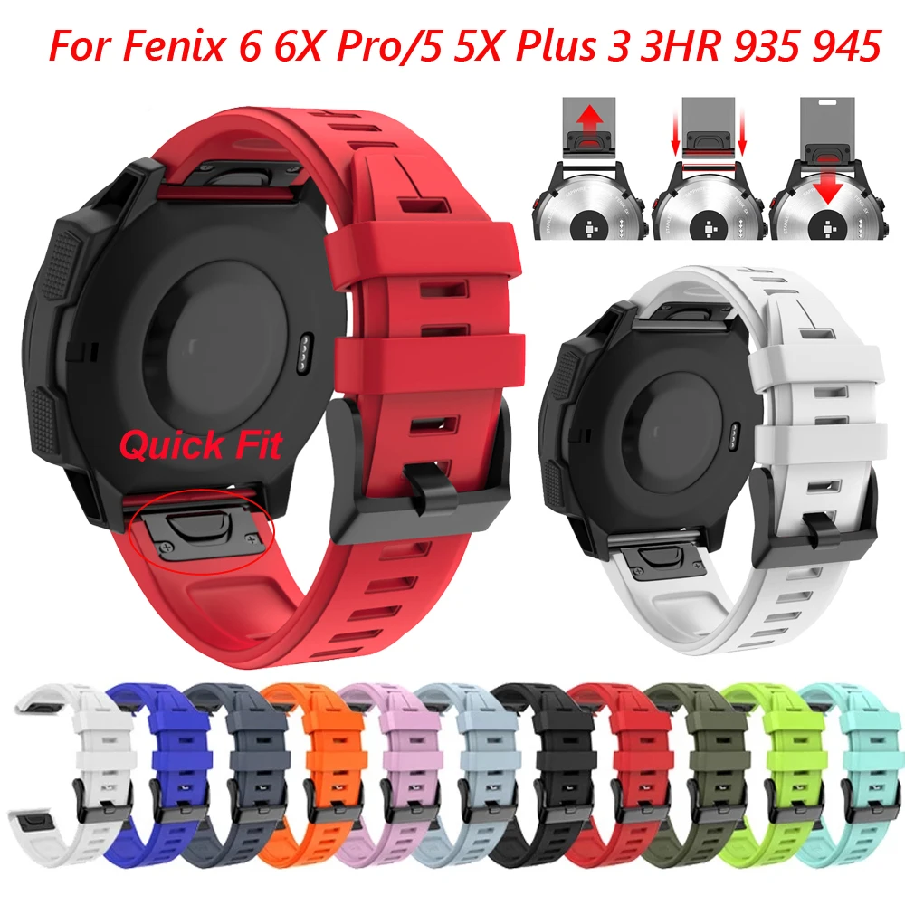 Ремешок спортивный силиконовый быстросъемный для Garmin Fenix 6 6X Pro 5X 5 Plus 3HR 935 Easyfit Wirstband Correa, 22 26 мм