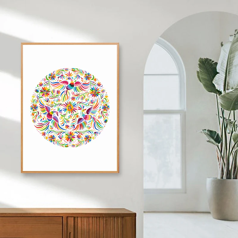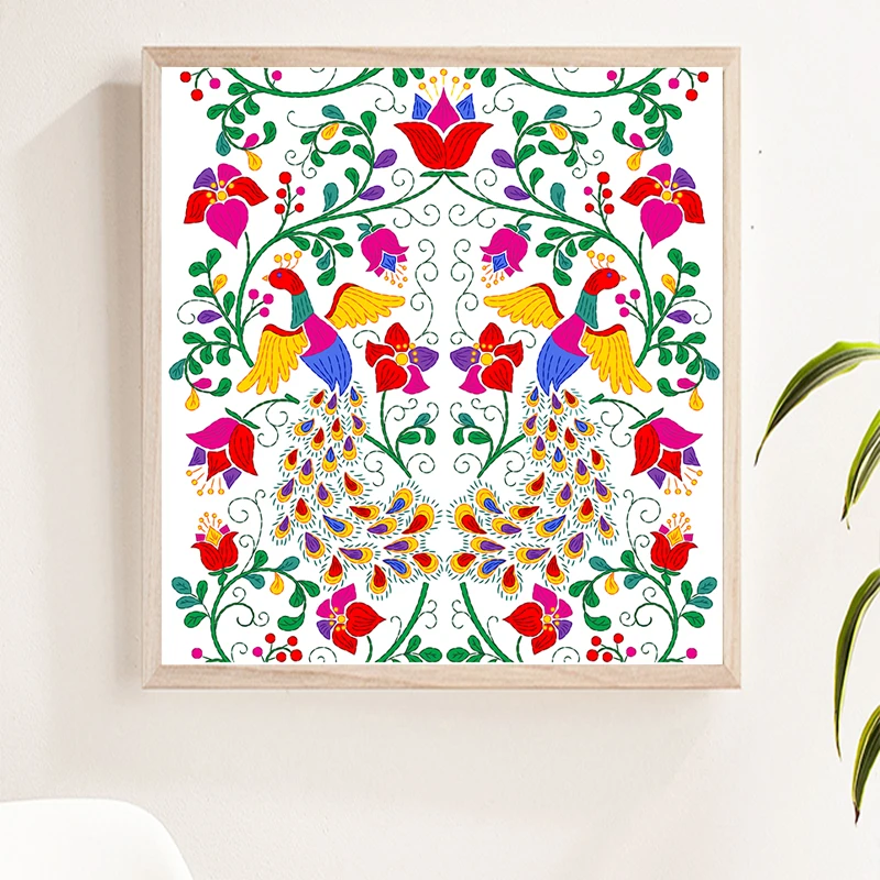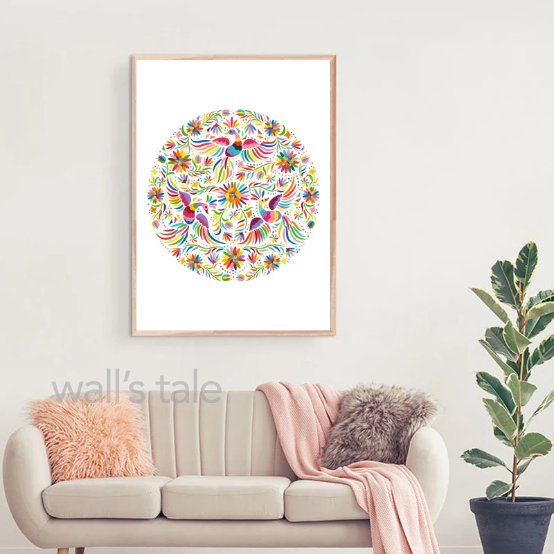 Красочная Мексиканская Народная картина Otomi, Художественная Картина на холсте, мексиканские Этнические настенные картины, павлин, цветочный постер, принты, украшение для дома