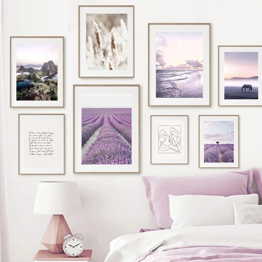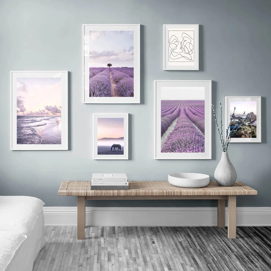 Фиолетовый постер с лавандой, настенная живопись на холсте, Пляжный Пейзаж, Художественная печать, скандинавские плакаты и принты, украшение для гостиной