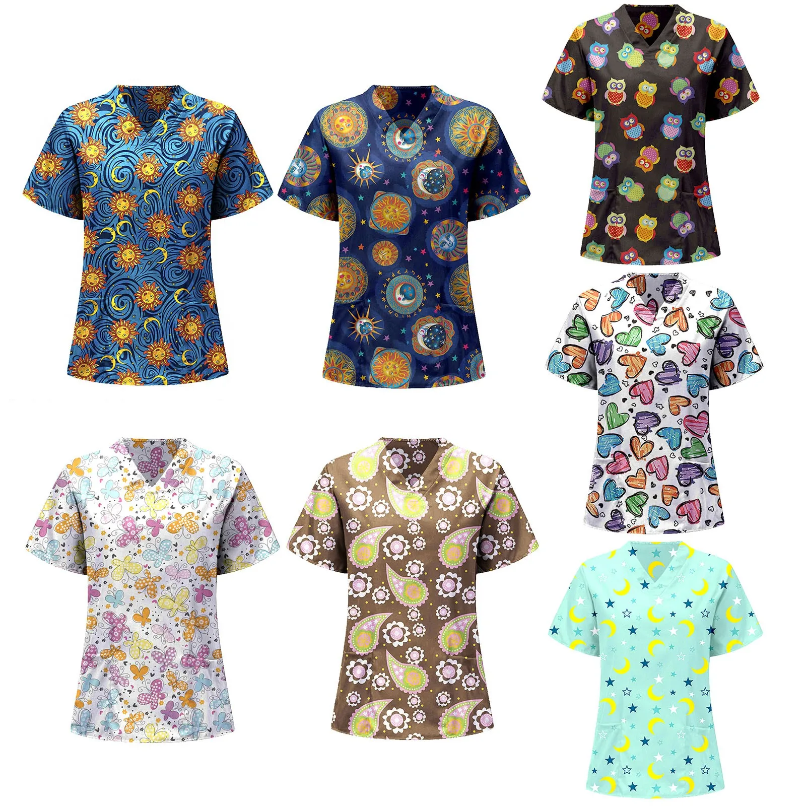 Блузка женская с принтом сердец, милая мультяшная униформа медсестр...