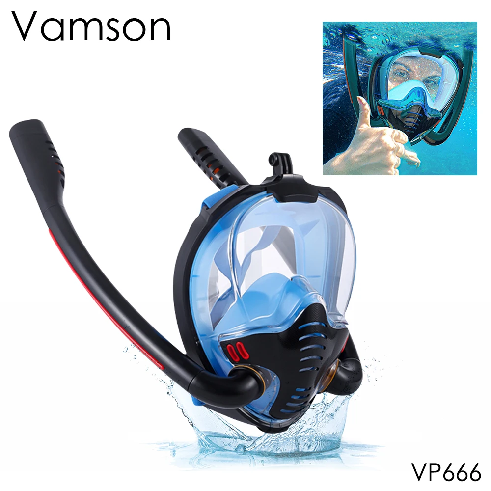 Маска для плавания и дайвинга Vamson, двойная дыхательная трубка, защита от запотевания, широкое поле 180 , для Gopro Hero 10, 9, 8, 7, 6, 5, крепление для камеры