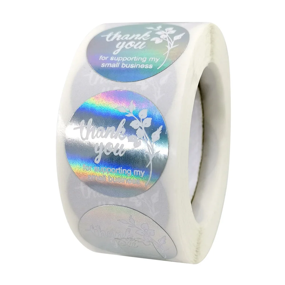 Разнообразные радужные лазерные наклейки, 50-500 шт., круглые голографические деловые этикетки, подарочная упаковка, наклейки для этикетки для печати