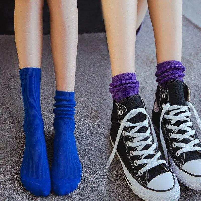 Конфеты Цвета носки женские Харадзюку в ретро-стиле женские ботинки с хлопковой подкладкой свободные длинные носки в Корейском стиле фиолетового, синего, желтого, розового цвета с нескользящих носочков