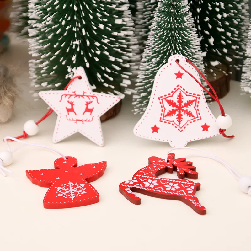 12 шт.лот DIY Белая и Красная рождественская елка пивные колокольчики деревянные подвесные украшения для дома Рождество Детские подарки украшения