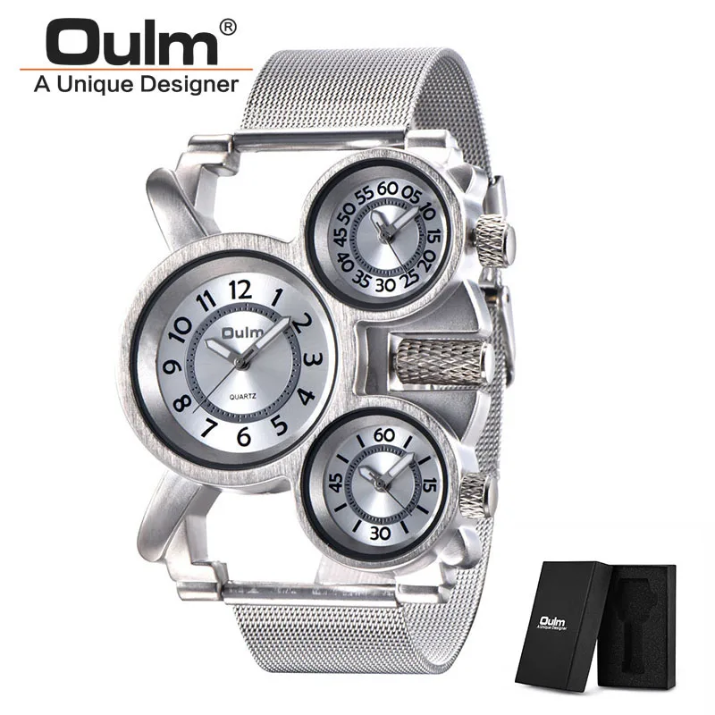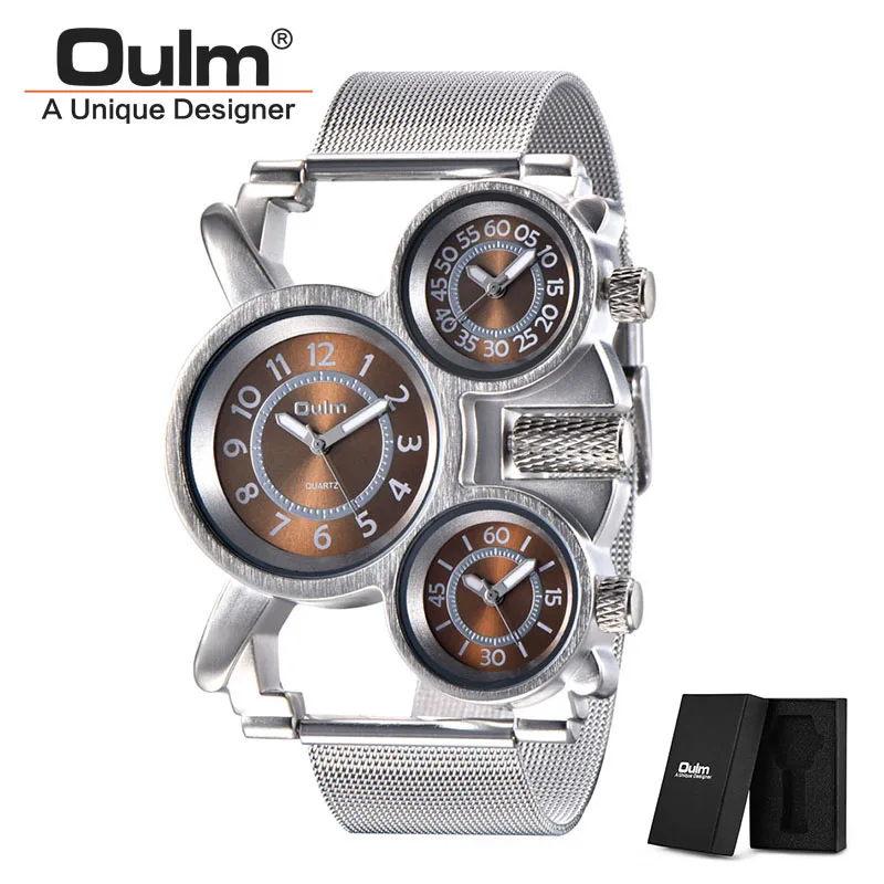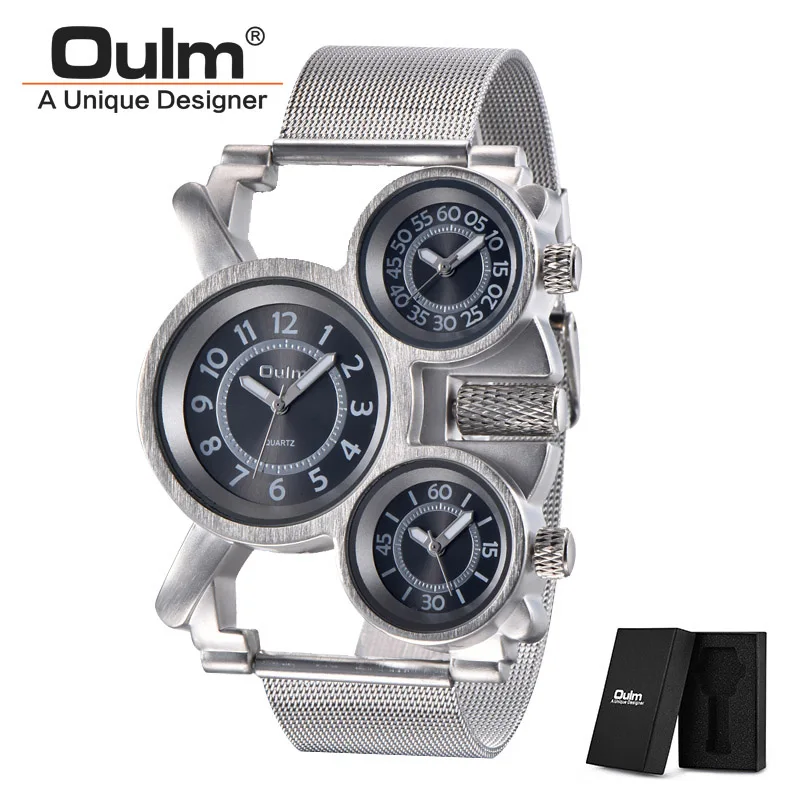 Мужские часы дропшиппинг Oulm Топ бренд Роскошные военные кварцевые часы уникальные 3 маленькие циферблаты сетчатый ремешок Мужские наручные часы erkek saat