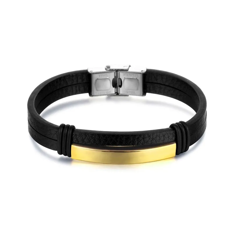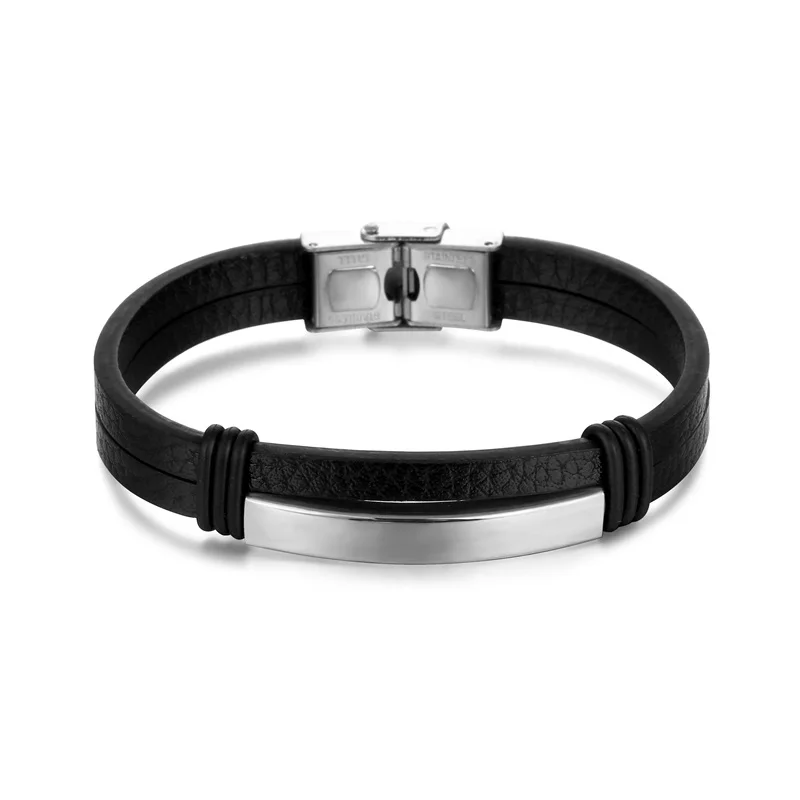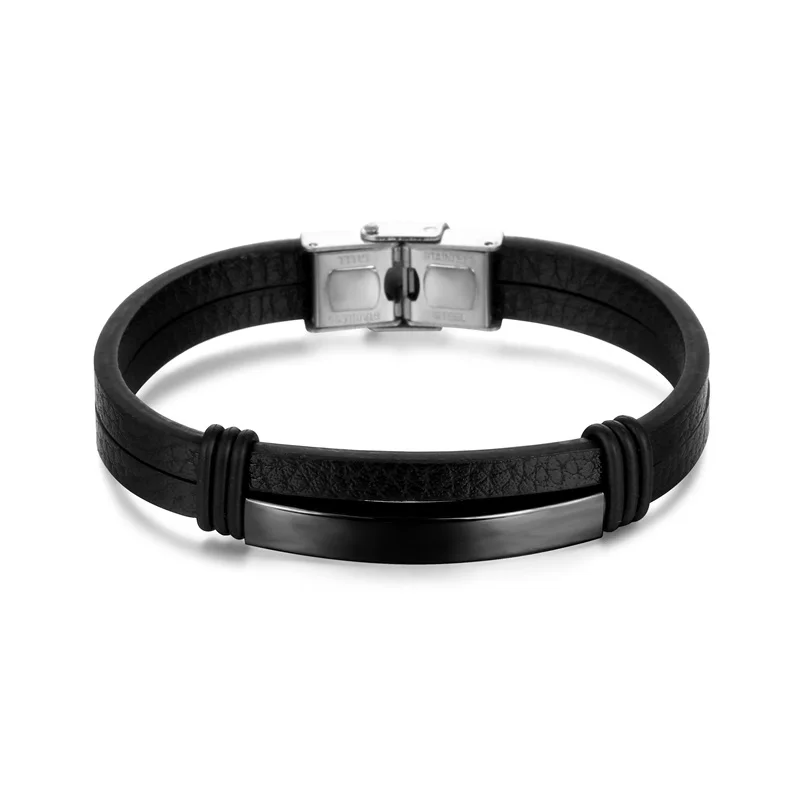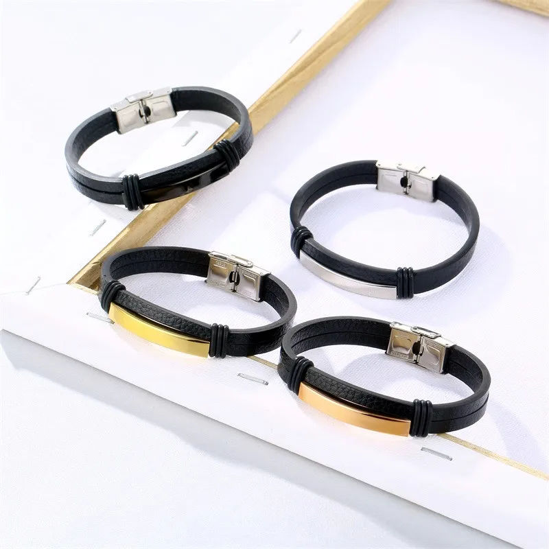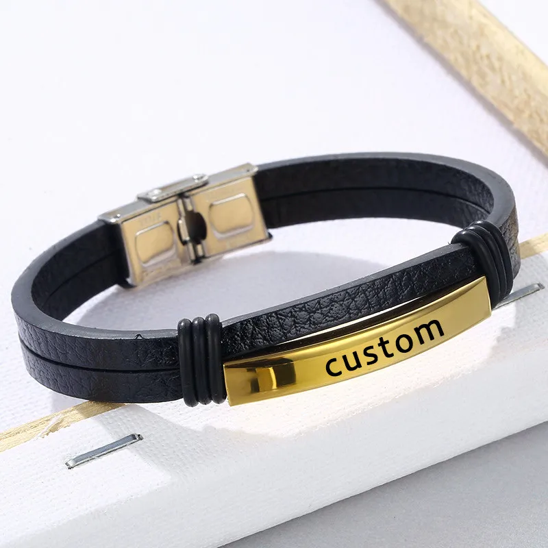 Кожа lD браслет персональный гравированный сталь банкой подарка изготовленный на заказ Гравировка имени с инициалами насквозь нанесения монограммы, мужские ювелирные изделия