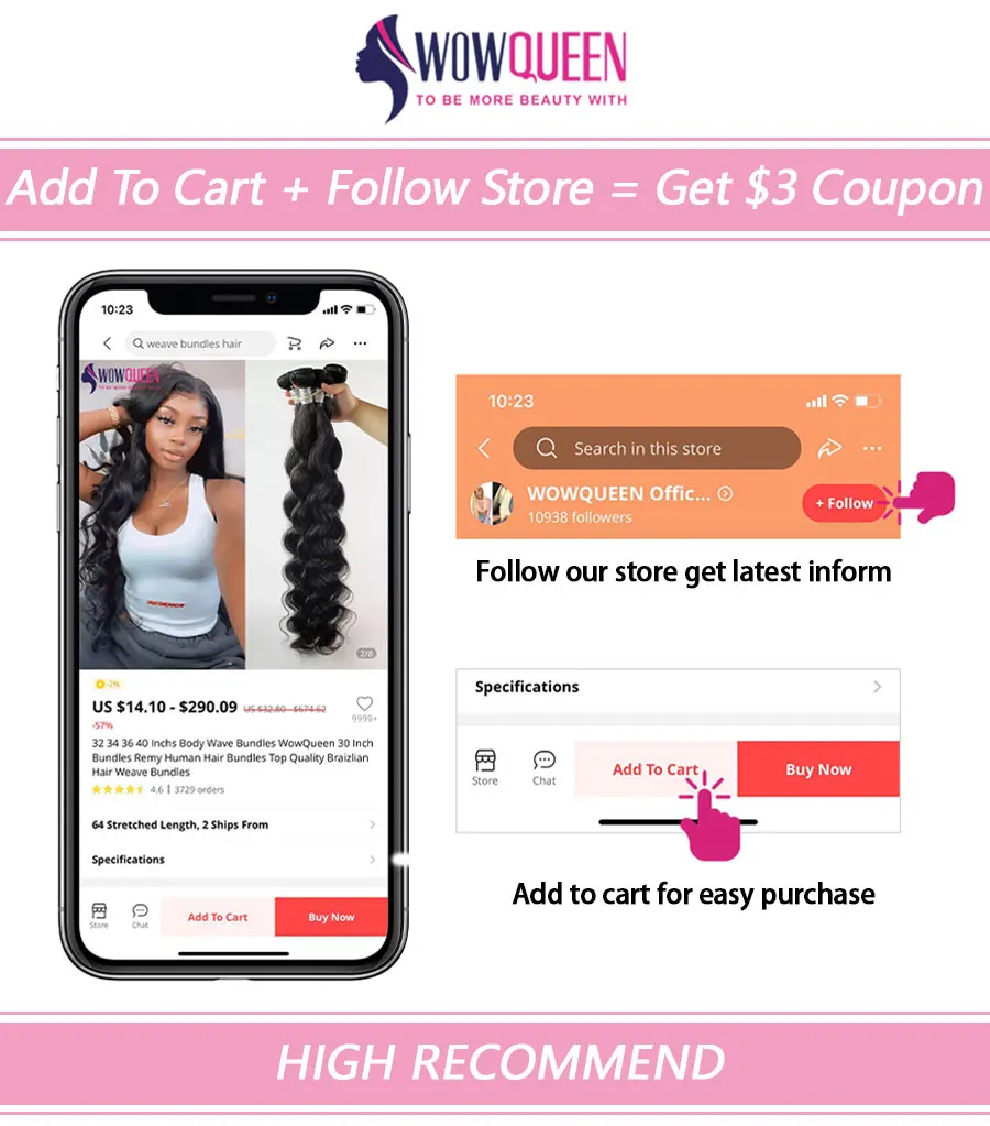 Пупряди натуральных волос WowQueen, бразильские, 32, 34, 36, 40 Дюй...