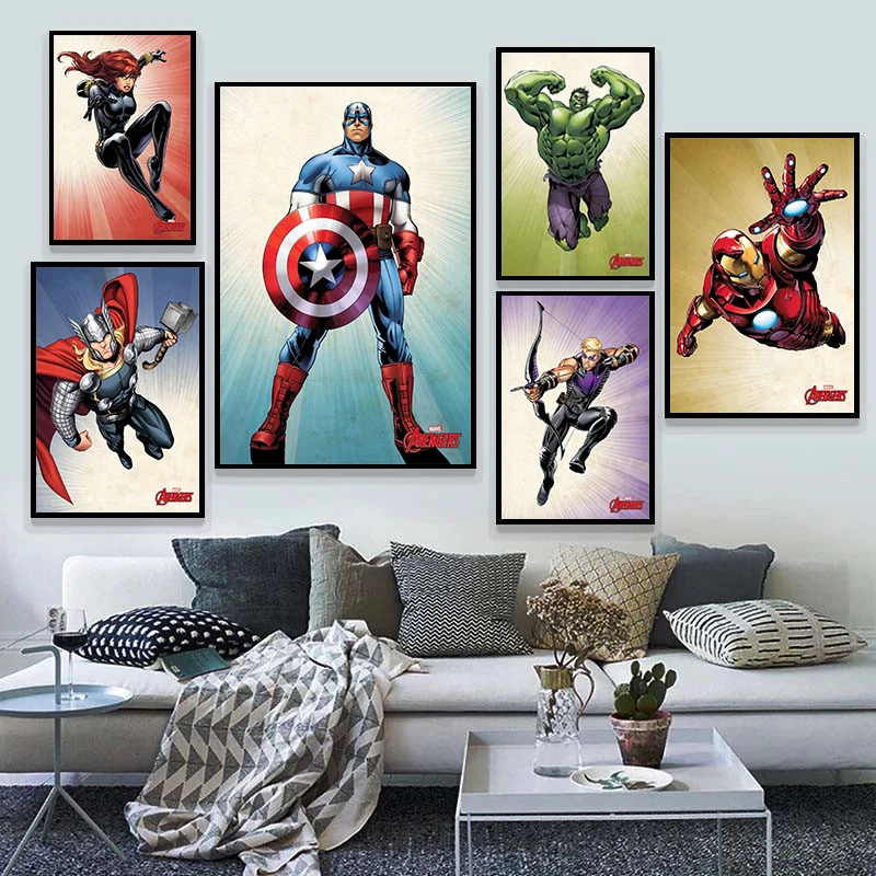 Картина на холсте с супергероями Марвел, плакаты и принты Железного человека, Капитана Америка, Настенная картина для детской спальни, домашний декор