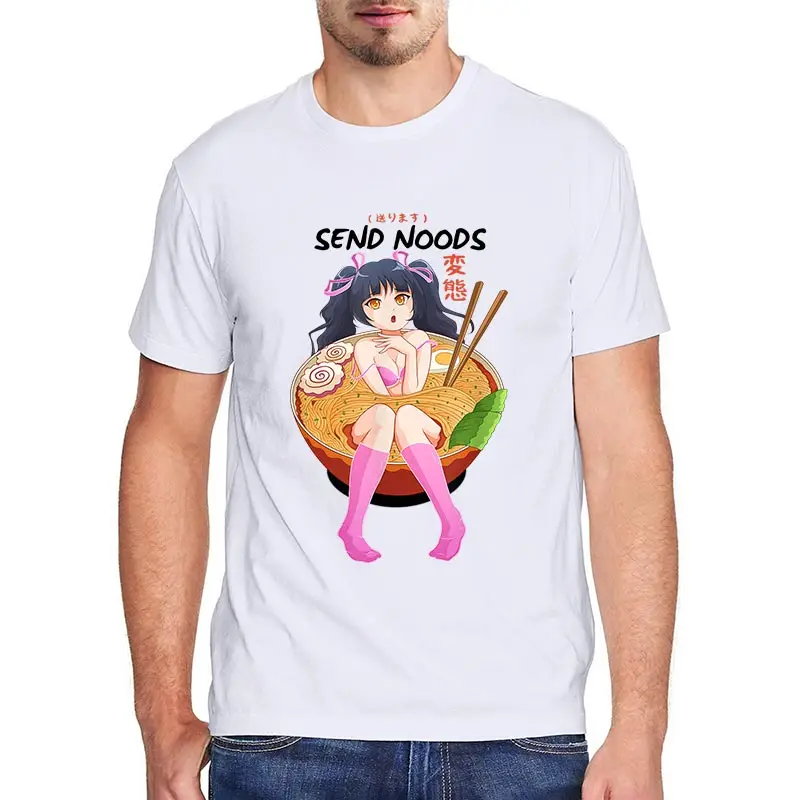 Забавные Anime Girl японские отправить Noods Мужская рубашка из хлопка Лапша Рамен чаша Мужская футболка сябу Хентай, аниме топы уличная 3XL 5xl