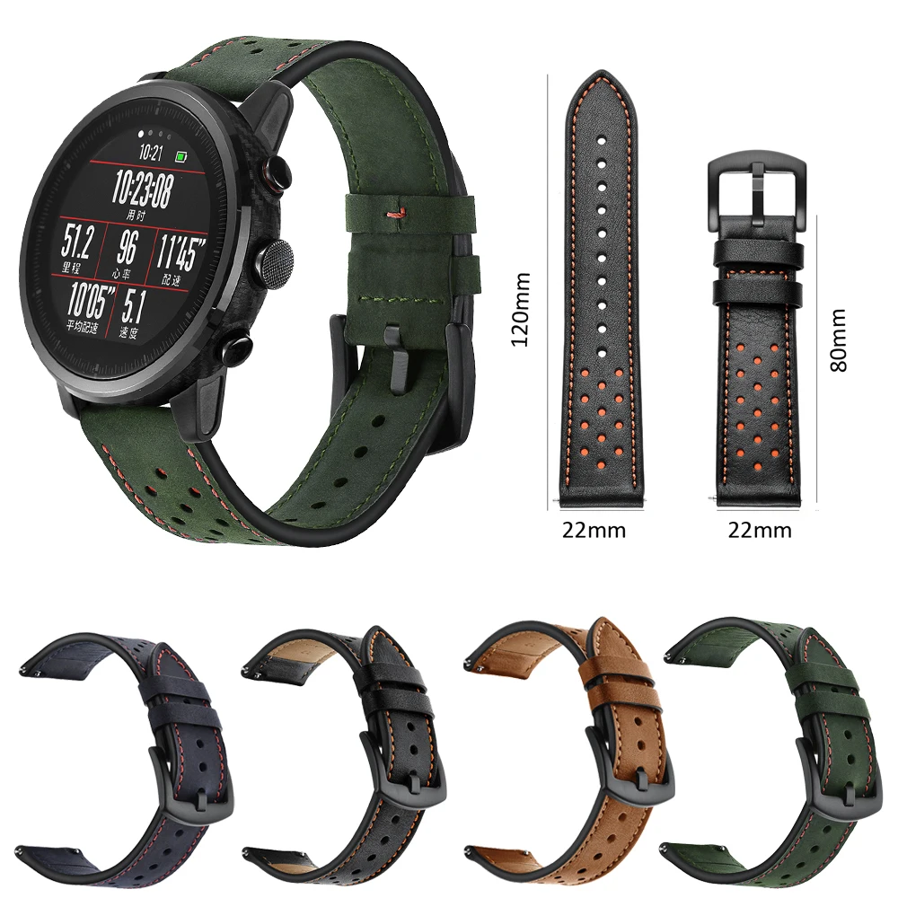 Ремешок из натуральной кожи для Amazfit GTR 42 мм 47 мм, браслет дл...