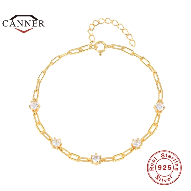 Женский браслет CANNER из настоящего серебра 100% пробы, роскошные модные браслеты с фианитами из серебра 925 пробы, Подарочная бижутерия с маркой 925
