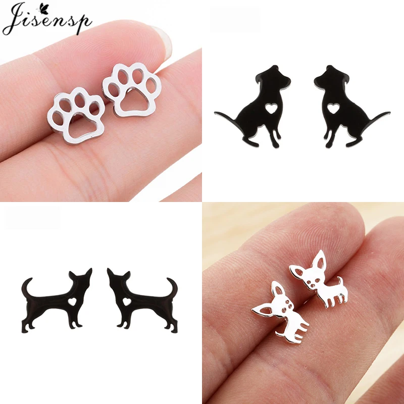 Серьги-гвоздики женские, из нержавеющей стали, в виде собачьей лапы