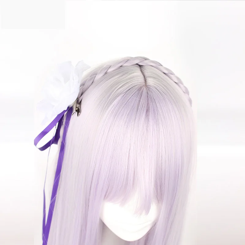 Re: жизнь в другой мир от нуля Emilia косплей парик комиксов Эмилия светильник Фиолетовый Длинные прямые волосы парик костюмы