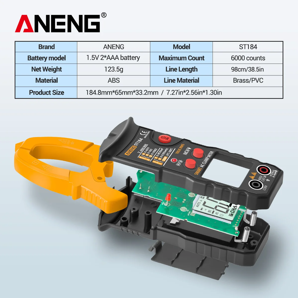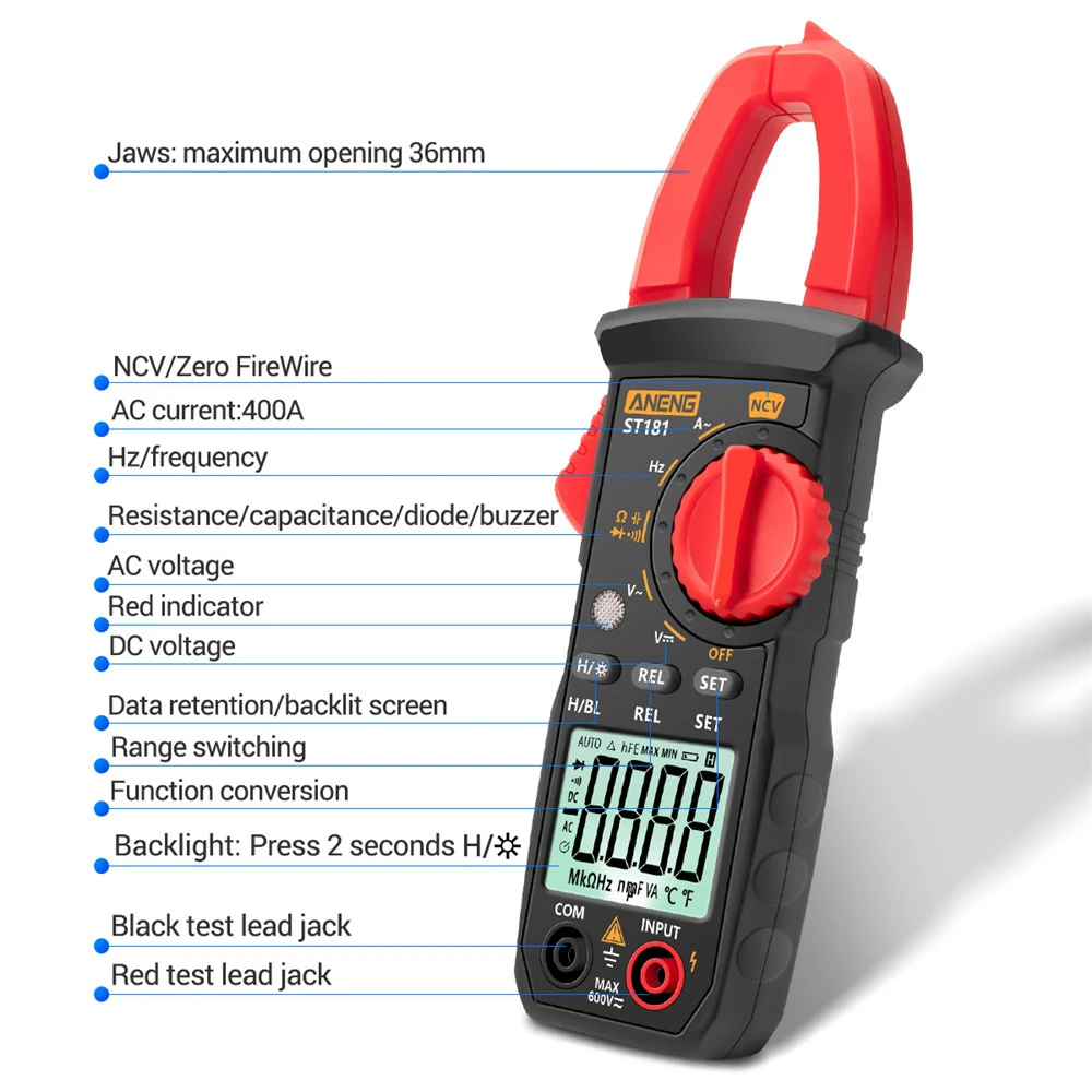 Цифровой мультиметр-зажим ANENG ST182 pro, 4000 отсчетов, с подсветкой