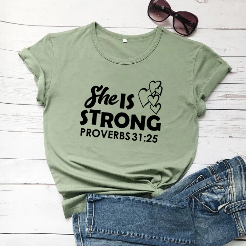 Лучшая христианка, она сильная вера в Иисуса, религиозная вдохновляющая Библейская цитата, церковная футболка, слоган, хлопковая футболка, винтажный Топ R096