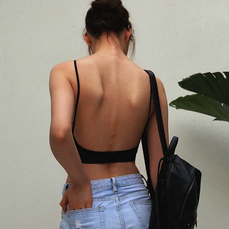 Женский кружевной бюстгальтер без косточек, бесшовный бюстгальтер большого размера с тонкими бретельками и открытой спиной невидимый бюстгалтер бесшовное топ на тонких бретелях