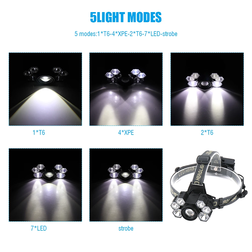 Налобный фонарь, светодиодный, 7 светодиодов, 3 * XML T6 + 4 * XPE