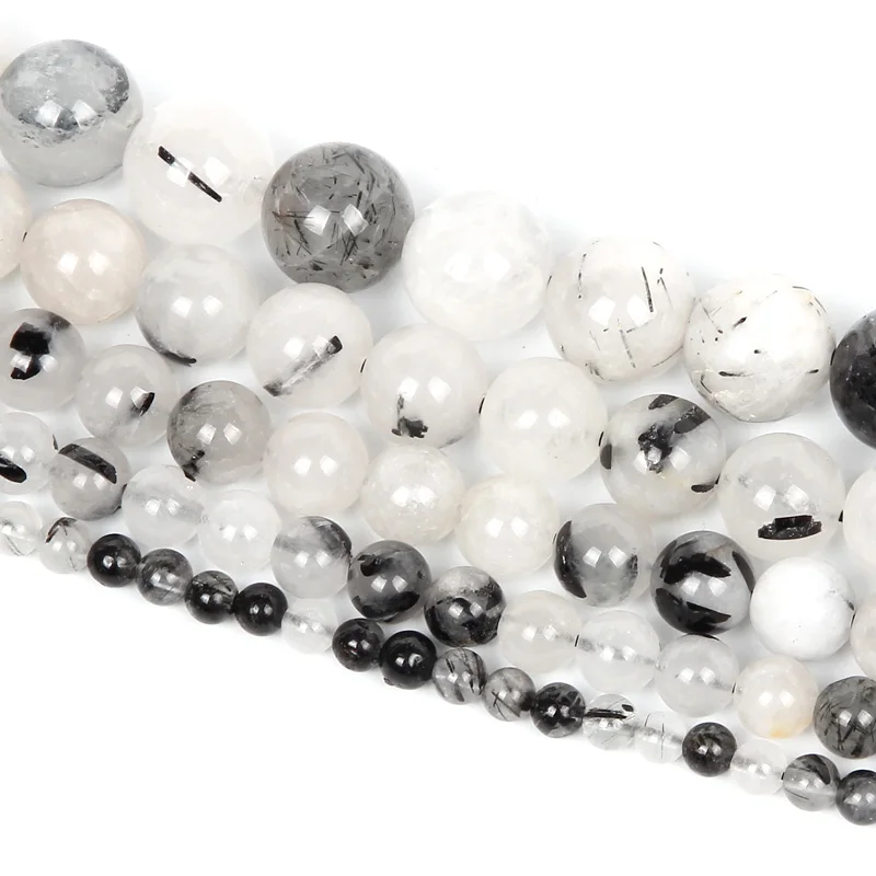 Бусины из натурального камня, черный кристалл для волос, кварц, круглые бусины-шармы для изготовления ювелирных изделий, рукоделия, браслет сделай сам, нить 4-12 мм