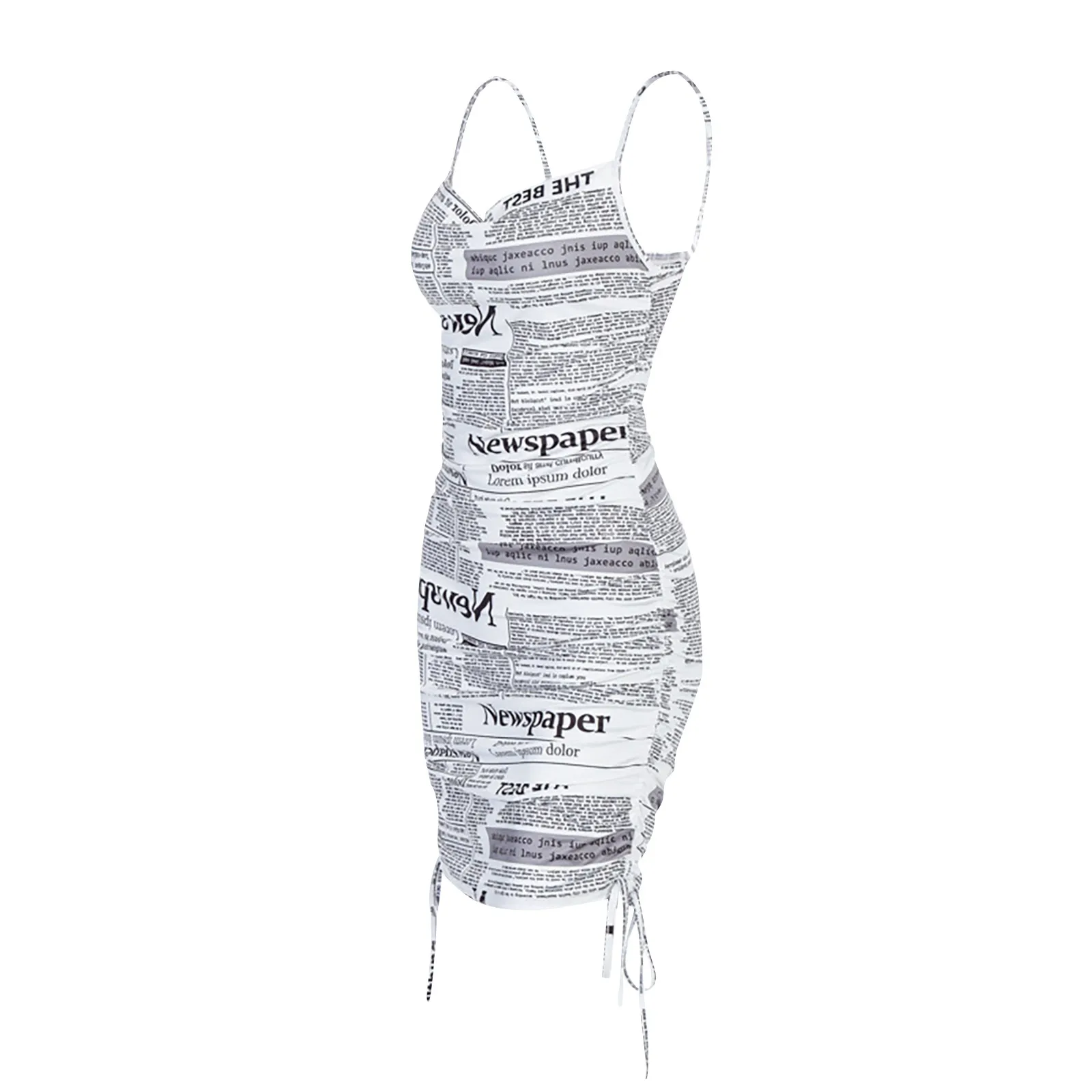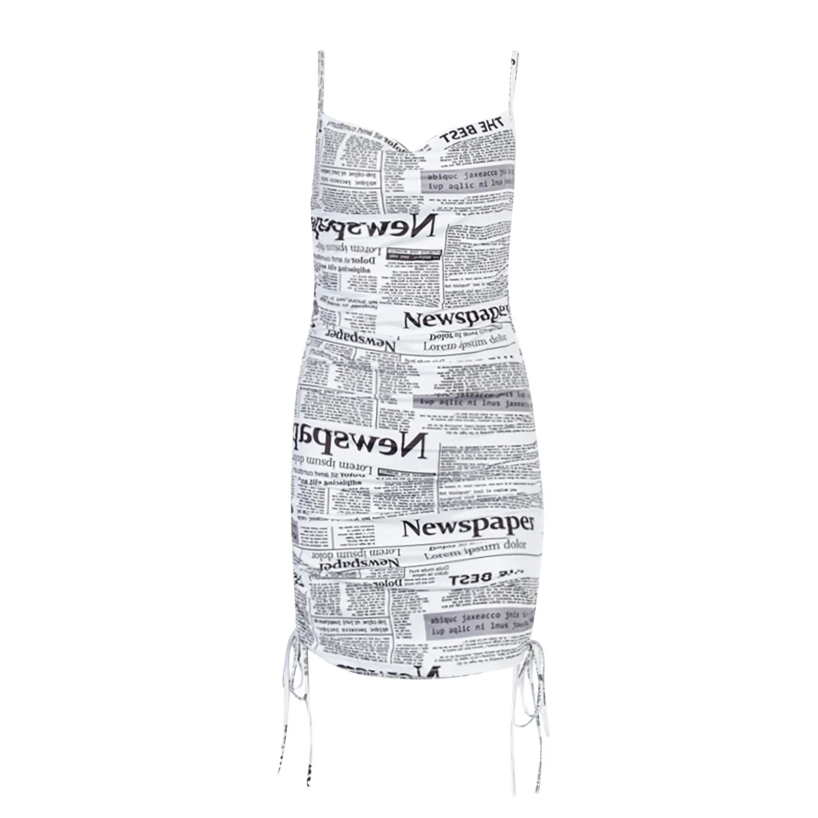DAIGELO размера плюс с принтом мини-платье женские 2021 женские вечерние газета печати шнурком с v-образным вырезом, мини-платье на бретельках Вечерние мини ужин