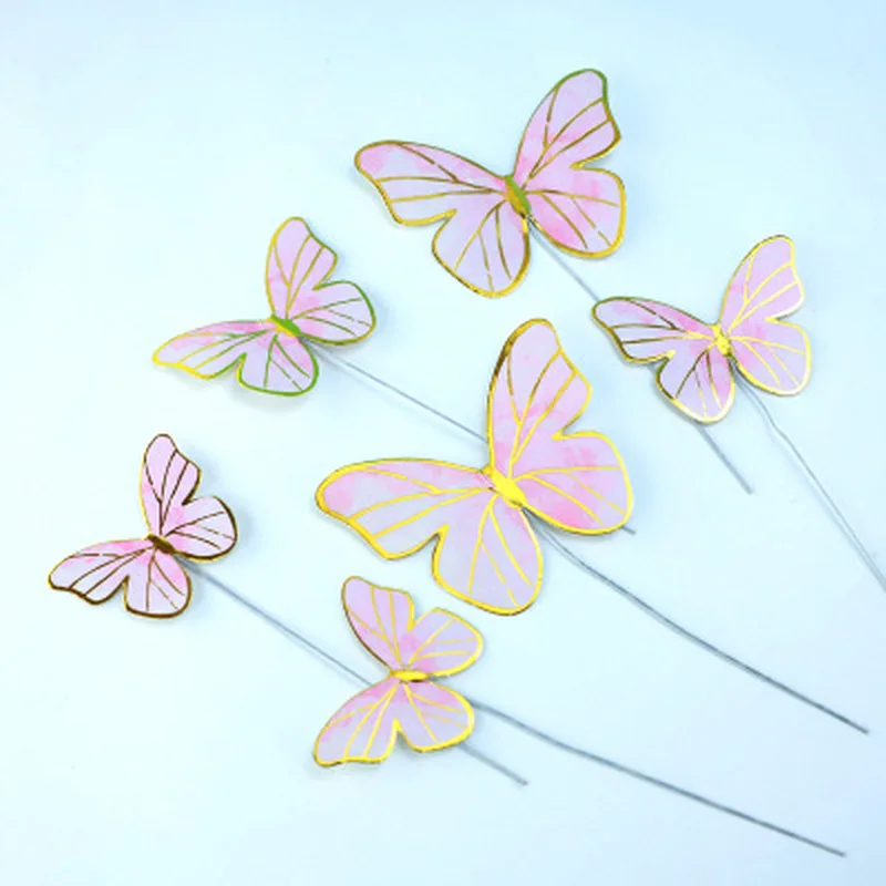 Розовые фиолетовые бабочки украшения для торта хромированные золоты...