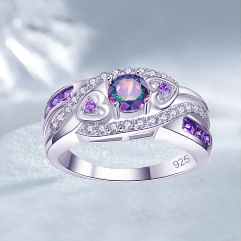 Лидер продаж, элегантное кольцо с фиолетовым кристаллом и опалом из циркония в форме сердца для женщин, ювелирные изделия для свадебной вечеринки
