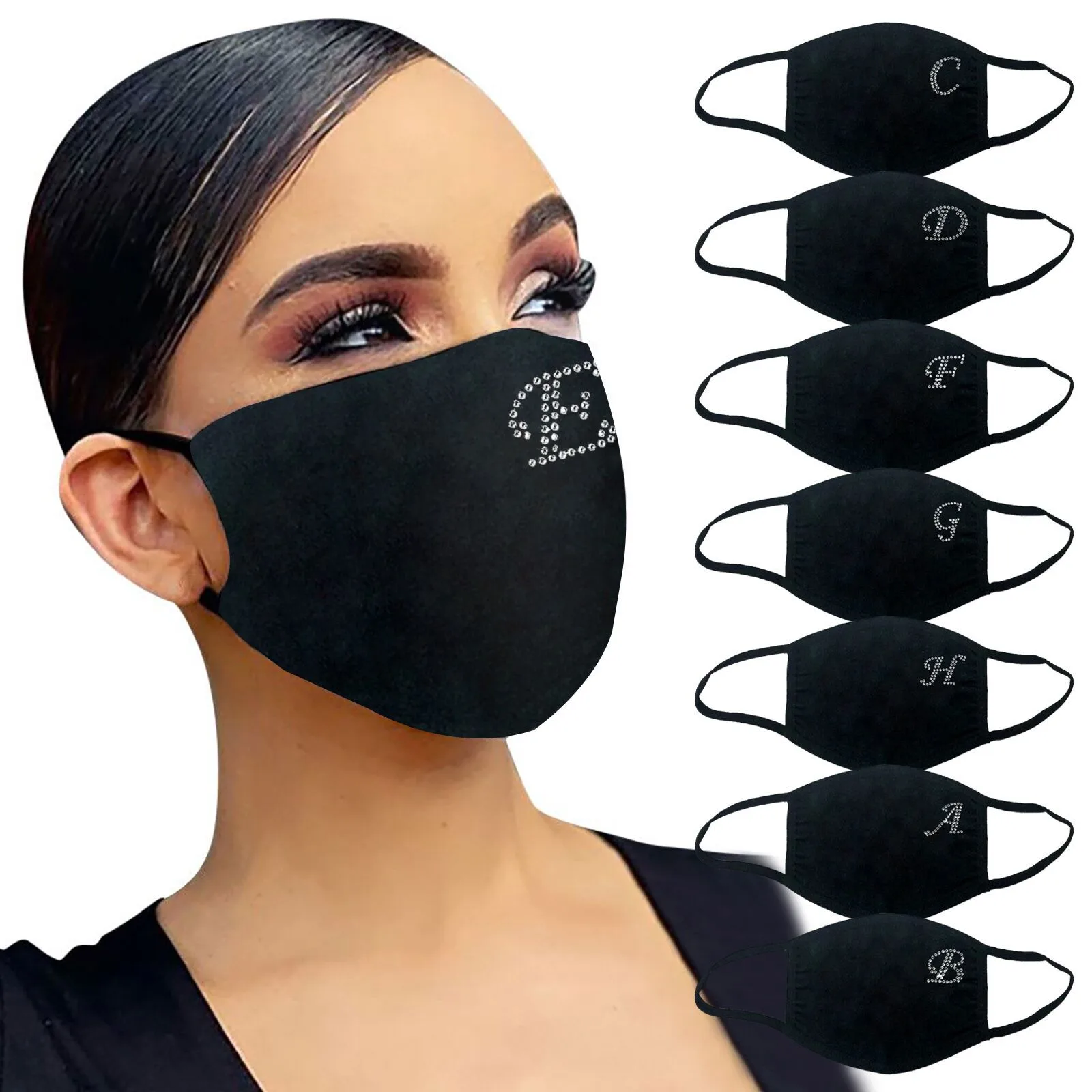 Маска для лица женская, хлопковая, для косплея, с надписью A-z, стразы, блестящая, Пылезащитная, ветрозащитная, маска на Хэллоуин