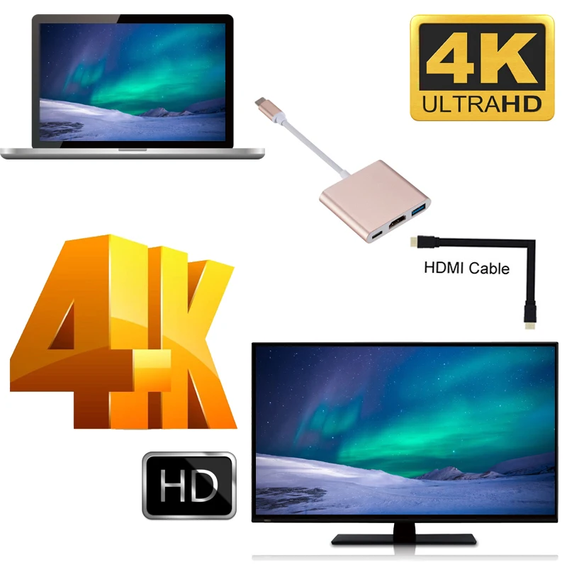 KEBIDU USB C концентратор к HDMI-совместимого адаптера для Macbook ...